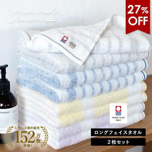 【27%OFFセール】今治タオル ロング フェイスタオル 2枚セット ナチュラルボーダー タオル 送料無料 (ポスト投函) 32×110cm ロングフェイスタオル ミニバスタオル まとめ買い ビッグフェイスタオル スポーツタオル 小さめバスタオル 薄手 スリムバスタオル