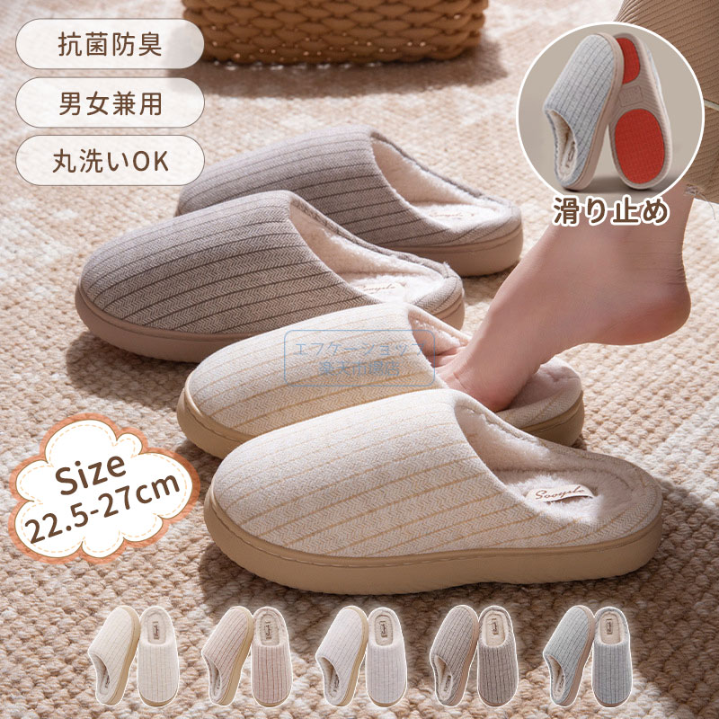 【2枚購入で200円OFF】スリッパ ルームシューズ レディース メンズ ルームスリッパ 室内用 保温 暖かい 滑り止め 冷え防止 ぺたんこ 室内履き 来客用 玄関 秋冬