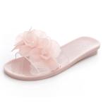【並行輸入品】レディースファッションフラットボトム透明アウター着用ゼリーサンダルサマーファッションフラワークリスタルビーチスリッパ。, アプリコ