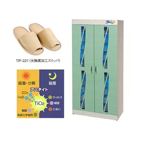 殺菌・乾燥機器 光触媒方式スリッパ殺菌ロッカー 10足用 緑 W350×D400×H1500mm KE-S010 コトヒラ工業