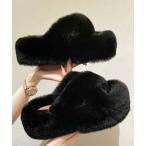 スリッパ 2-1A58 フェイクファー クロス 厚底 ルームシューズ サンダル スリッパ