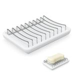 Linkidea 二層セラミックソープディッシュ ステンレススチール 自己排水ソープトレイホル