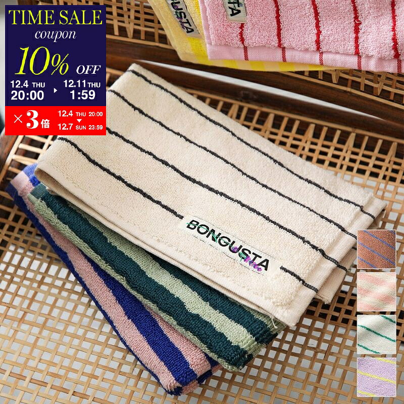 【10%OFFクーポン対象・12/4-20時~】BONGUSTA ボングスタ タオル NARAM GUEST TOWELS ナラム ゲスト レディース コットン ロゴ ボーダー 30×50 カラー9色【cp_ten】