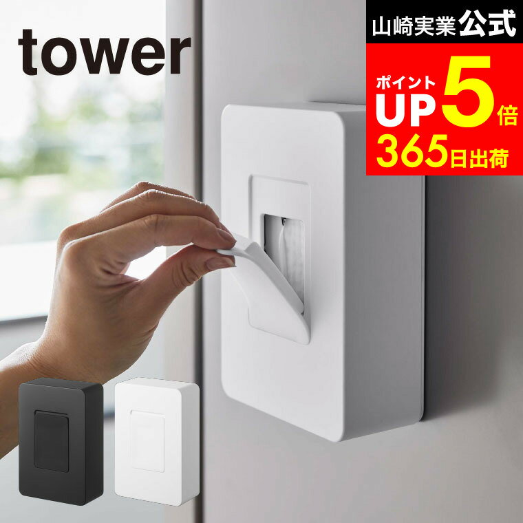 特典付 山崎実業 両面コンパクトティッシュ&ウェットシートケース タワー tower 公式 ティッシュケース ウェットティッシュ 収納 白 黒 2040 2041