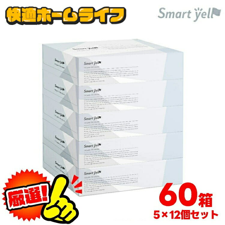【60箱】箱ティッシュ 150組(300枚)5箱×12パック ソフト コンパクトボックスティッシュ ティッシュペーパー スマートエール ケース販売 オフィス 花粉症 業務用 60個セット ユニバーサル・ペーパー 【D】