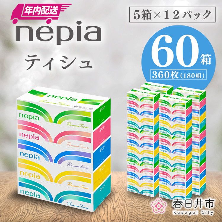 【ふるさと納税】【入金確認後2週間以内発送】【年内配送】ネピアティシュ5箱×12パック | 日用品 消耗品 必需品 大容量 ティッシュ ボックスティッシュ 箱ティッシュ ストック 花粉症 花粉 防災 備蓄 まとめ買い 全国 発送 一人暮らし nepia ネピア