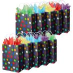 BLEWINDZ ティッシュ付きスモールギフトバッグ 32個 - 水玉ブラックパーティーギフトバッグ ハンドル付き カラフルなレインボーペーパーグッディバッグ パーティ