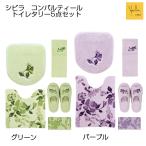 トイレタリー5点セット シビラ コンパルティール 兼用フタカバー+トイレマット+スリッパ+PHカバー+ハンドタオル グリーン/パープル