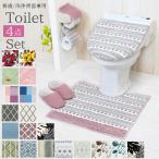 トイレマットセット 4点 通販 トイレフタカバー おしゃれ トイレスリッパ トイレットペーパーホルダー カバー トイレセット 花柄 洗える トイレマットセット