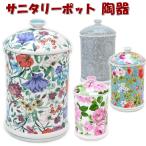 トイレポット 陶器 花柄 ミックス ピンク ブルー グレーおしゃれ サニタリーポット トイレ コーナーポット ゴミ入れ ごみ箱 ダストボックス ロイヤルアーデン 輸