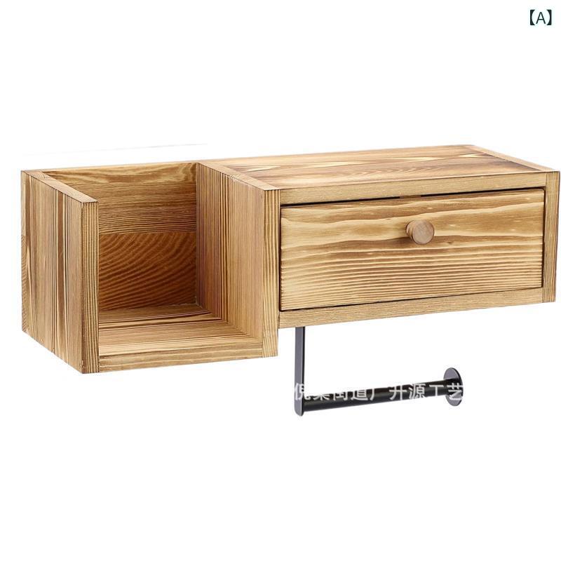 トイレットペーパーホルダー 木製 壁掛け 棚付き ロールペーパーホルダー 鉄製 レトロ アンティーク調 収納 トイレ 洗面所(x500)