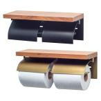 トイレットペーパーホルダー おしゃれ 2連 棚付き ダブル DIY アイアン シンプル 天板付き 天然木 スチール モダン おしゃれ 北欧 インテリア