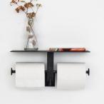 トイレットペーパーホルダー ブラック 黒 2連 棚付 K203K016D