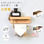 トイレットペーパーホルダー アルミ 木製 ウッド おしゃれ シングル 天板 トレー付き ラック 小物置き ゴールド アンティーク調 北欧