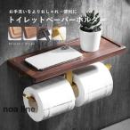 トイレットペーパーホルダー 木製 紙巻き器 2連 おしゃれ トイレ用品 トイレ インテリア ダブル ゴールド 棚付き 小物置き 収納 北欧風 キッチンペーパー 洗面