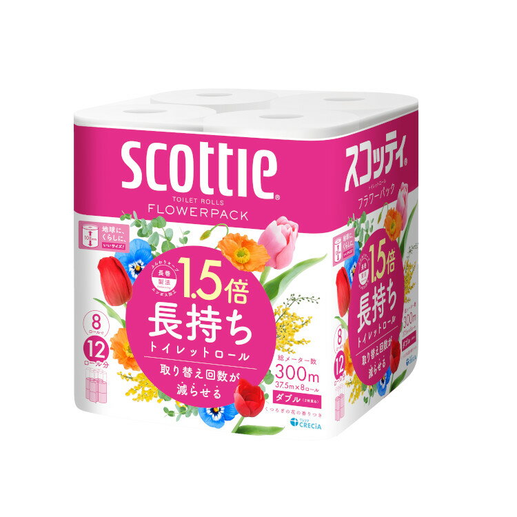 【20%OFF】トイレットペーパー ダブル スコッティ フラワーパック 1.5倍長持ち 37.5m 8ロール 26355 スコッティ