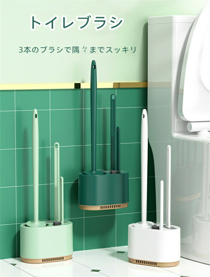【楽天スーパーSALE15%OFF】トイレブラシ トイレ掃除 PP TPR材質 穴開け不要 スッキリ収納 清潔簡単 収納ケース付き 北欧 トイレ用ブラシ トイレ掃除 掃除道具 壁掛けでもスタンドでもOK 3本のブラシ