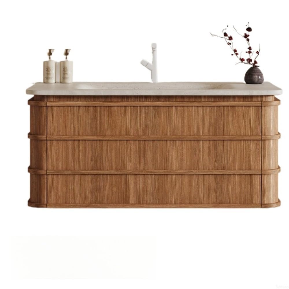 洗面化粧台 洗面台 シンク付き 陶器製 コンパクト設計 浴室/トイレ用 蛇口付き 防水加工 大容量収納 取り付け簡単 自立型 屋内屋外兼用 Tuduzo (80cm,B岩板熱湾曲一体盆)