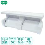 トイレペーパーホルダー 棚付2連 | トイレットペーパー ホルダー 紙 トイレ 棚つき 2連 コアレス対応 芯なし 片手カット 簡単に切れる