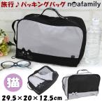 パッキングバッグ トラベルバッグ トラベルポーチ 猫柄 ノアファミリー ブラック グレー 大きめ 旅行ポーチ ランジェリーポーチ ネコフェイス マルチポーチ 着替