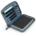 Londo 本革パッドフォリオ ペンシルホルダー メモ帳 ジッパー開閉 (ブルー)