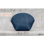ふるさと納税 本革 ラウンドポーチ 日本製 レザー 革製品 ポーチ 化粧ポーチ 旅行 トラベル 出張 Liete vivid ネイビー 兵庫県福崎町