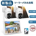 防犯カメラ 屋外 家庭用 ソーラー防犯カメラ 見守カメラ ペットカメラ wifi 小型 2台セット 400万画素 モニター付き動体検知 暗視撮影 スマホ対応