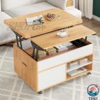 コーヒーテーブル 昇降式 収納付き リフトアップテーブル ナチュラル 和風 おしゃれ センター キャスター付き 高さ調節 ダイニングテーブル リフティング食卓 リ