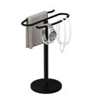 KWQKEM ハンドタオルホルダータオルハンガー スタンド ステンレス製ブラック 腕時計.ジュエリーラック アクセサリー収納 卓上タオルバーラッ