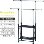 ハンガーラック 2段 室内物干し 伸縮式 ダブル 折りたたみ キャスター付き 丈夫 スチール 移動 部屋干し 物干しスタンド 洗濯物 W71-120×D31×H74-145cm