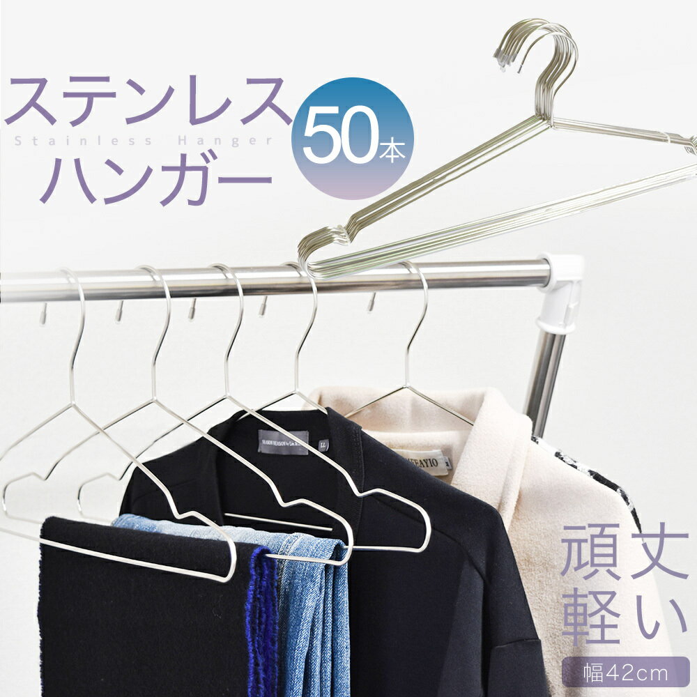 ステンレスハンガー 50本 セット 42cm ハンガー ステンレス 42 すべらない 錆びない 頑丈 洗濯 おしゃれ ニット 型崩れ防止 スリム 収納 シンプル 軽量