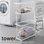 ランドリーワゴン+バスケット タワー スリム 山崎実業 tower ホワイト ブラック 8464 8465 ランドリーバスケット 2段 洗濯かご タワーシリーズ yamazaki