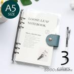 ルーズリーフ A5サイズ 6穴 クリアバインダー ホルダー DIY手帳 取り外し可 レザー調ベルト スナップボタン ノートブック メモ帳 ステーショナ
