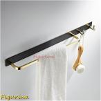 バスルームラック タオルレールラック 真鍮タオルバー 壁取り付け ネジ不要 取り付け ブラック ゴールド バスルームタオルバー フック付き