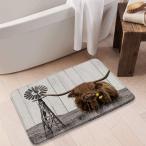 【並行輸入品】GURMQIK ロングホーン 牛 バスマット 農場 動物 ハイランド 牛 農家 風車 素朴なイエロー フローラル デイジー ウェス