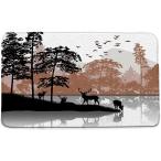 【並行輸入品】鹿の森 バスマット 松 山 鳥 ヘラジカ 動物 湖 シルエット 素朴なキャビン ハンティング 野生動物 秋 カントリー ロッジ フ