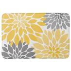 【並行輸入品】バスマット 吸水性超快適 バスルームラグ 豪華なバスルーム装飾マット 滑り止め裏地付き 屋内ラグ 黄色とグレー 菊 花柄 シャワー
