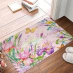 【並行輸入品】Watercolor Colorful Meadow Flowers Welcome Doormat, Spring Flora
