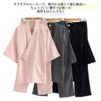 パジャマ 寝間着 寝巻き 和風 浴衣 上下セット 無地 2点セット ルームウェア バスローブ 部屋着 トップス 前開き 七分袖 お風呂上がり 旅館