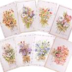 メッセージカード サンキュー 誕生日バースデー ドライフラワー リボン | 立体 3D 箔押し ゴールド | 花束 花 | カード+中紙8種セット