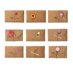 JRIQHOLD レターセット 9枚メッセージ カード クラフトペーパー手紙セット [カード * 封筒 * シール * 紐 * 造花]15.5*10.6cm 大きい