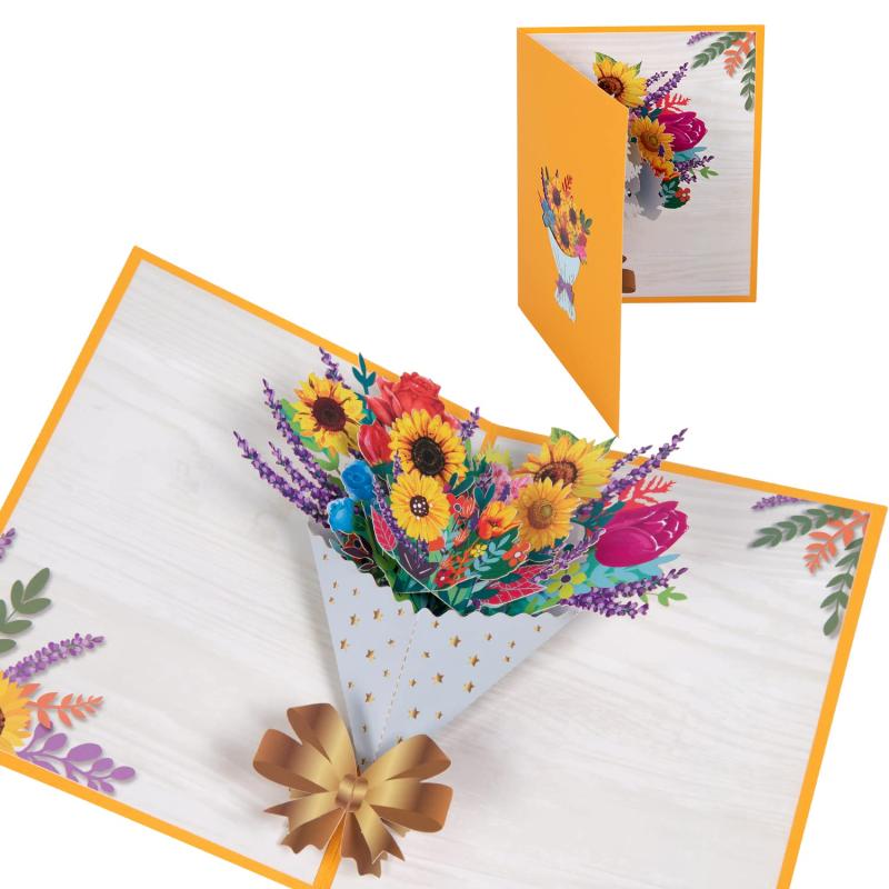 バースデーカード 立体 大人 ポップアップ 花 メッセージカード おしゃれ バレンタインカード 母の日3D ギフトカード 感謝 記念日 誕生日 飛び出す 封筒付き (ひまわり)