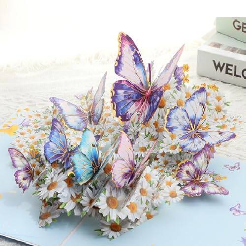 Bethany Home グリーティング カード 2枚 3D立体 花 蝶 DIY メッセージカード 母の日カード 結婚式 ポップ アップ 新年カード 感謝祭 お祝い 誕生日 バレンタインカード バースデーカード ホワイ