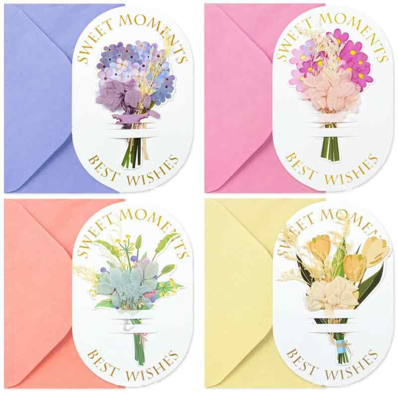 Bethany Home グリーティング カード 4枚 ドライフラワー DIY メッセージカード 母の日カード 結婚式 ポップ アップ 新年カード 花 感謝祭 お祝い 誕生日 バレンタインカード バースデーカード