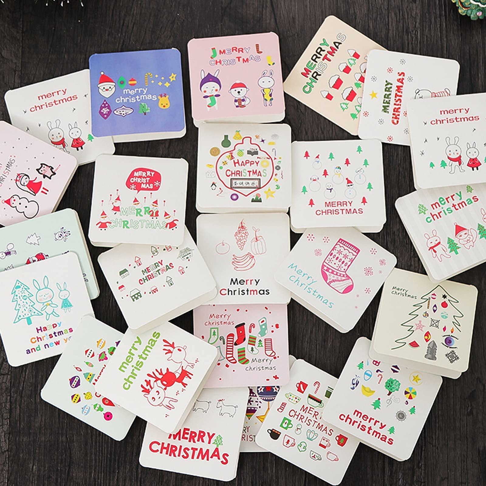 (あき) クリスマスカード ミニサイズ メッセージカード 24枚入り 折りた状態7*7cm ミニカード 感謝状 サンキューカード グリーティングカード 感謝カード はがき おしゃれ 子供 若者人気 お友達向けお誕生日カード 記念日 新年用(クリスマスカード 24枚 M4)