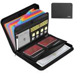 JUNDUN ファイルケース、A4 耐火ドキュメント ジッパーとラベル付き重要書類 整理ケース、12 ポケット大容量紙アコーディオンー レター