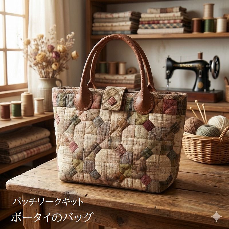 パッチワークキット ボータイのバッグ はぎれで作るキルトバッグ 手作りバッグキット 完成品オーダー可