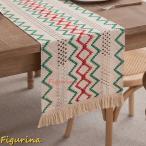 テーブルランナー リネン コンビ 幾何柄 タッセル付き チェック柄 センターテーブル パッチワーク ボヘミア風 かぎ針編み 田園風 民族風