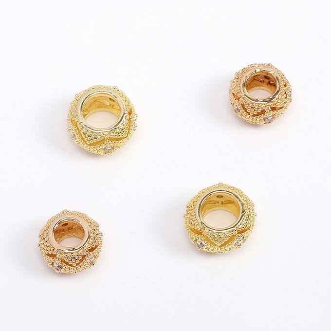 即日発送!高品質メタルビーズ ジルコニア付き ゴールド