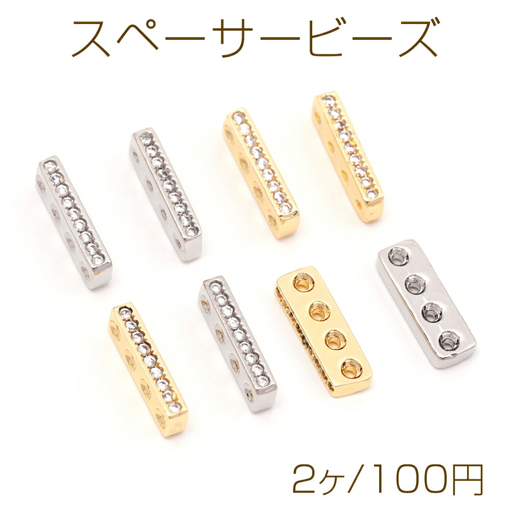 スペーサービーズ ストレート ジルコニア付き メタルビーズ メタルスペーサー ロンデルビーズ 4穴 約2×12mm(2ヶ)